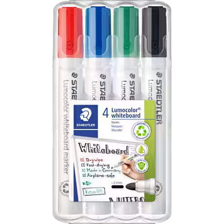 Equip yourself with Lumocolour whiteboard markers from Staedtler and use them on a daily basis for convenient writing during lessons, conferences and meetings.
