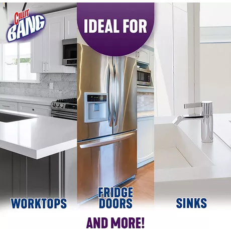 Enjoy sparkling clean surfaces in your kitchen and bathroom with this bleach trigger spray by Cillit Bang.