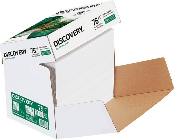 Ensure working convenience with a great paper from Discovery Brilliant paper engineered to be kind to the environment and your wallet, the Discovery 75 g/m² A4 printer paper offers you fantastic performance.  Description: The modern office environment features a variety of different printing, copying, and faxing devices. To avoid complications, sourcing printer paper versatile enough to deal with these multiple requirements is an absolute must....View more