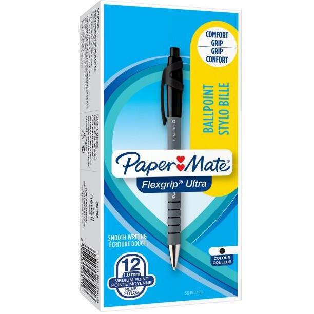 Papermate FlexGrip Ultra Ballpoint Pen Black Medium 0.5 mm Pack of 12