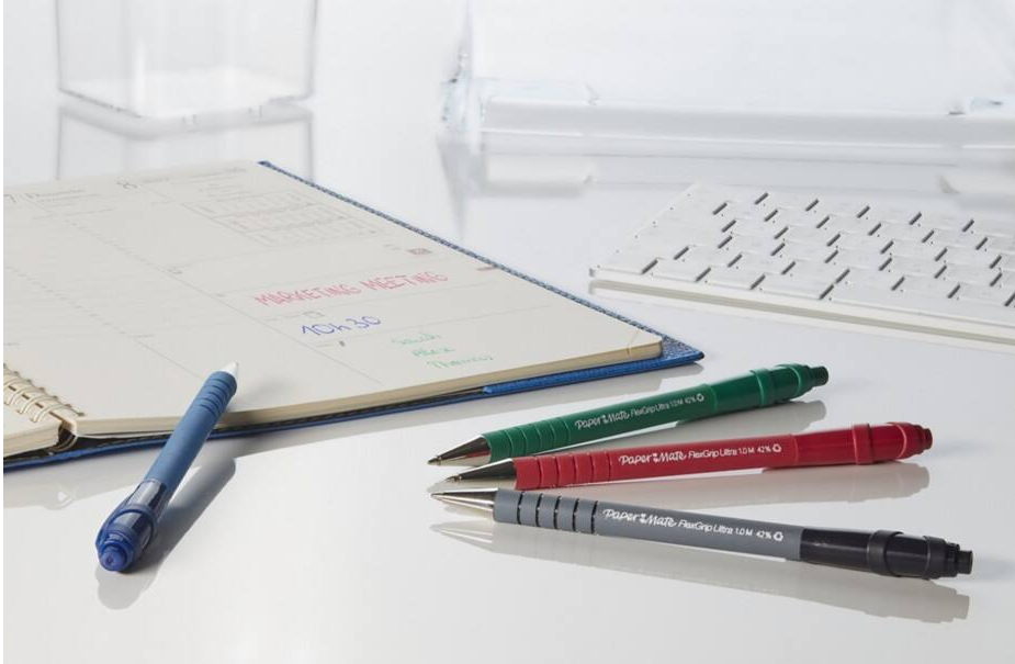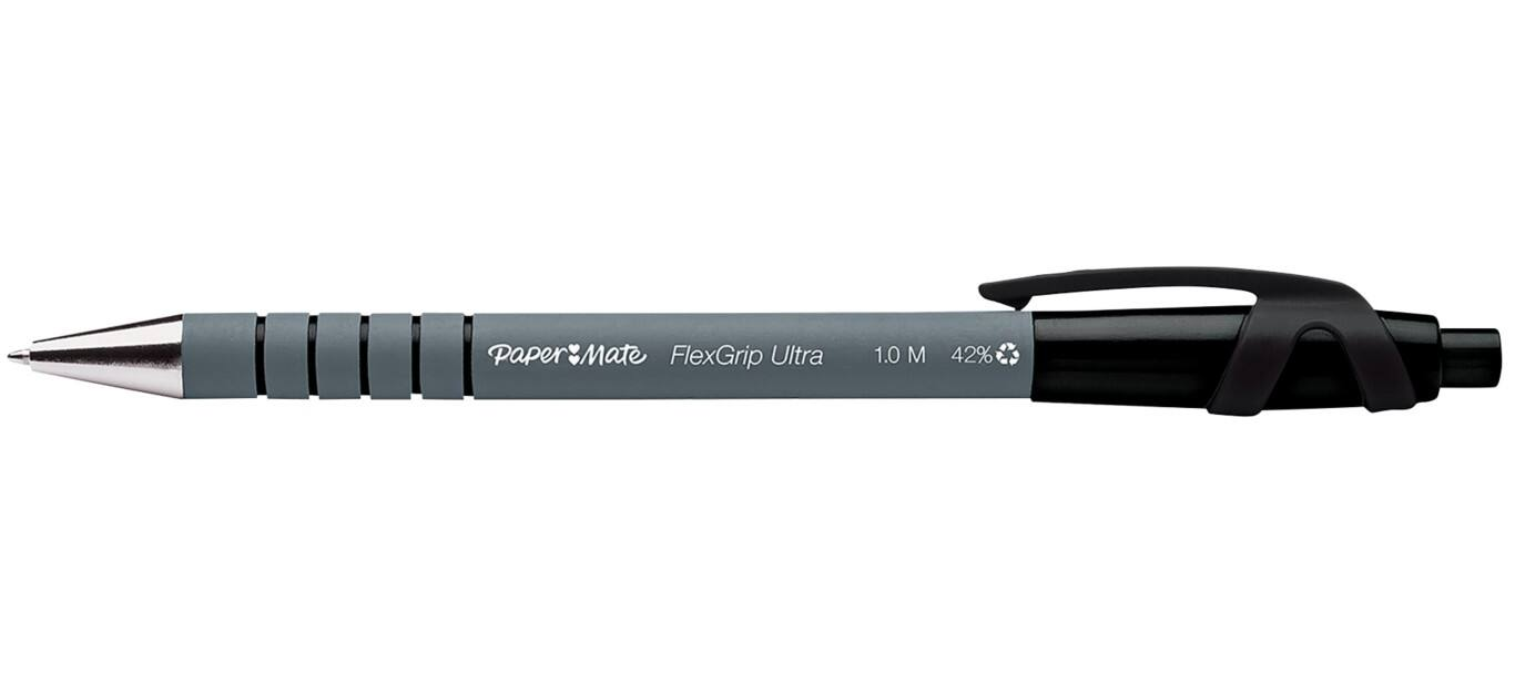 Retractable Papermate ballpoint pen provides a smooth, comfortable writing experience in a sleek design Share your great ideas and messages with the world with these Papermate Flex Grip Ultra ballpoint pens and make an impression that lasts. Description: These Flex Grip Ultra ballpoint pens from Papermate provides high quality writing at the home, school and the office. Their Lubriglide blue ink creates bold and smooth...View more