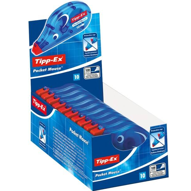 Cover up with Tipp-Ex Right your wrongs with this Tipp-Ex correction roller pocket mouse. Its cool blue colour makes it a stylish accessory to have. Description: The Tipp-Ex Pocket Mouse correction roller has compact and spill-proof qualities that give you a mess-free performance, every time. This correction roller has 10000 mm of instant-dry tape that lets you get immediate, precise, and clean corrections for all...View more